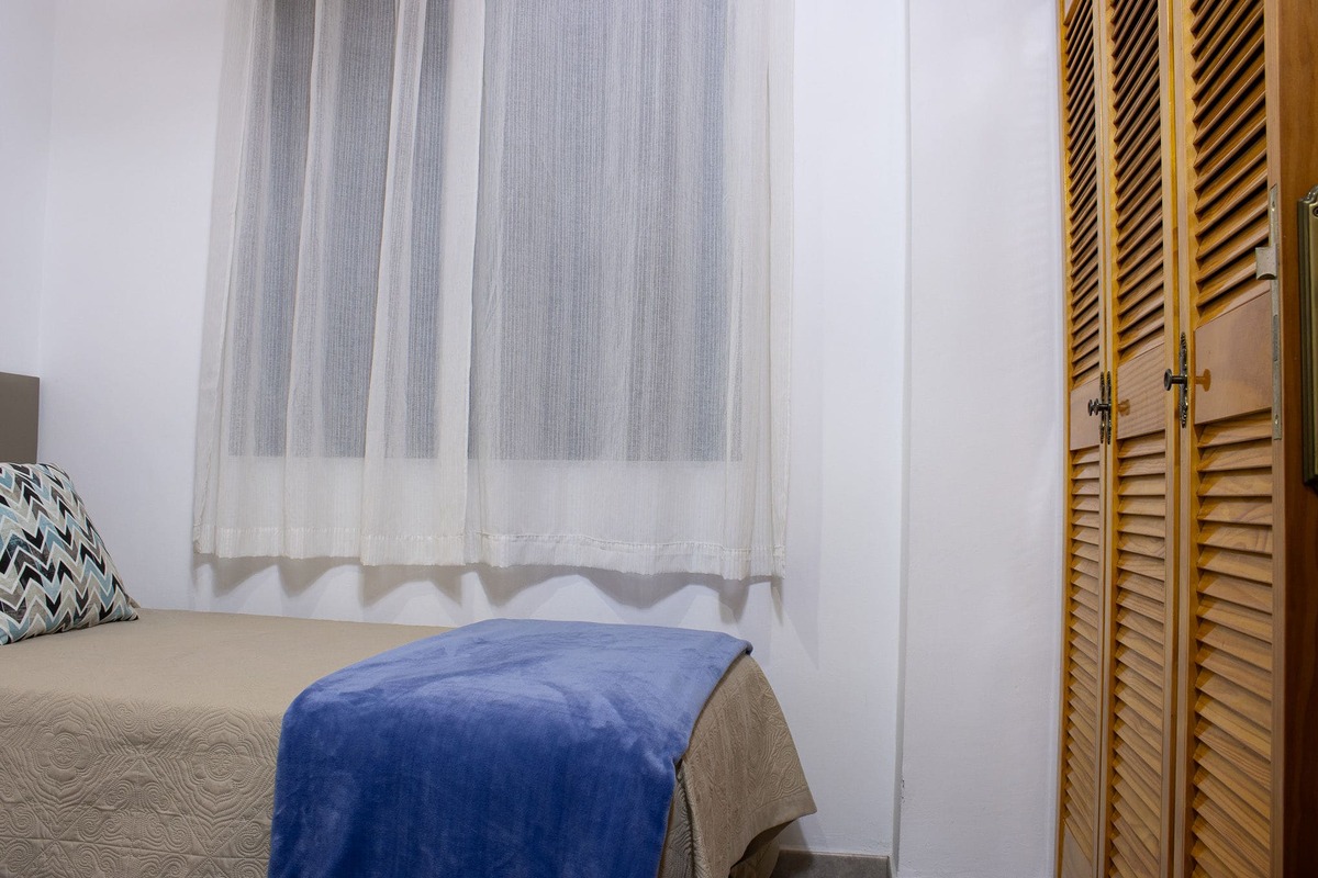 Cuenta con 1 habitación con dos camas individuales y otra estancia con un sofá cama doble, además de aire acondicionado para mayor confort. Su ubicación es ideal, ya que se encuentra cerca de mercados, tiendas y restaurantes, combinando practicidad y ambiente costero en un mismo lugar.